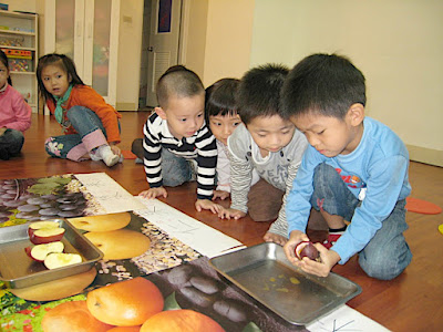 Eventhough Tyler doesn't officially attend pre-k, he attends classes at "Owl," a bushiban in the afternoon for older kids, and in the mornings "classes" for 3-4 year olds. It's a wonderful environment with small class size (8-10), a great big classroom (bright and clean too!), wonderful teachers and a proprietor with attention to detail. All parents received a little portfolio of artworks/pictures from fall/winter 08, but recently they gave us a CD with all these wonderful photos of the kids in classes. Tyler only attended two days a week since it's a bit far from our house, but seeing all these photos it seems all worth it. Here are some photos from his classes, you can click to take you to the Picasa Album with all the photos.Teacher Pei Yu - Teaching the kids where rice comes from (she's holding up the chinese character for uncooked rice (grain))